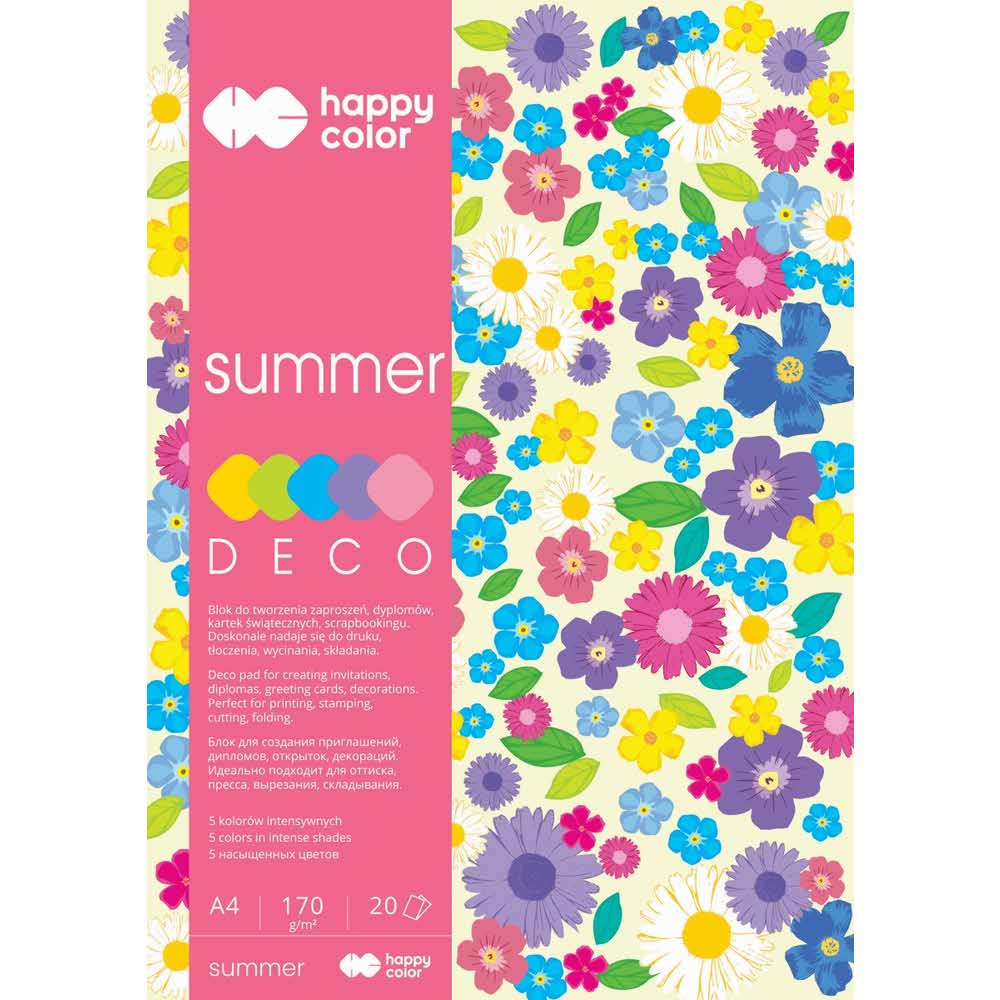 Happy Color, Blok Deco Summer, 5 kolorów, A4, 170g, 20 arkuszy HA 3817 2030-120