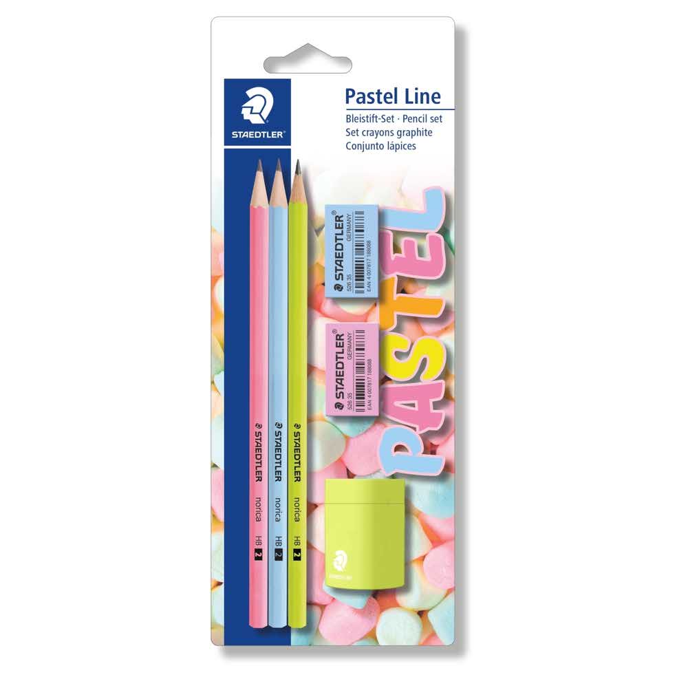 Staedtler, Zestaw – 3 ołówki sześciokątne Norica Pastel Line, 2 gumki + temperówka S 130 43 SBKP1