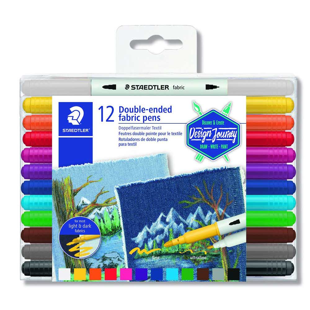 Staedtler, Flamastry dwustronne do tkanin Design Journey, 12 kolorów S 3190 TB12