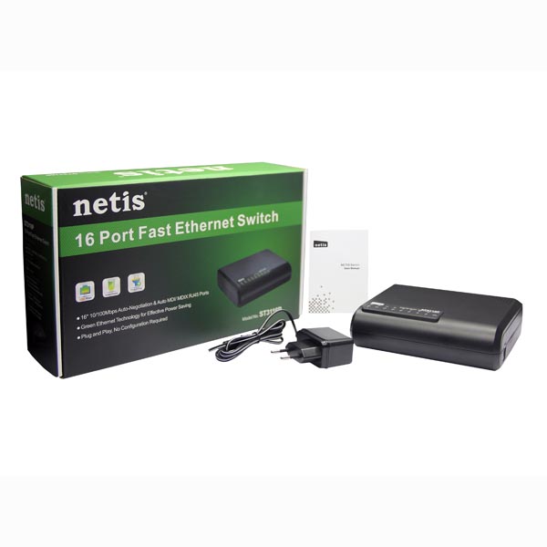 NETIS switch ST3116P 100Mbps auto MDI MDIX plug and play
