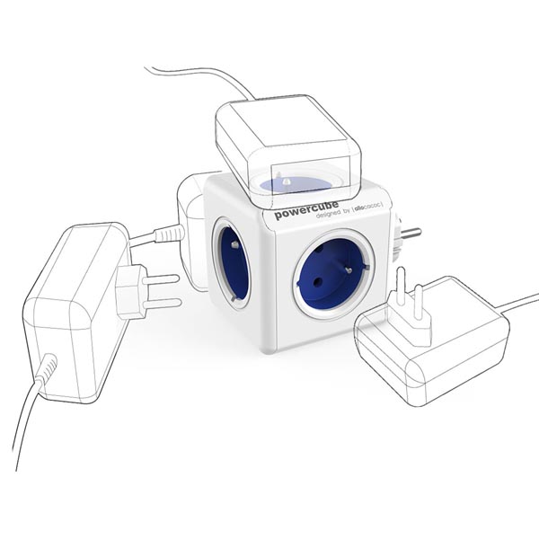 Listwa zasilająca 240V CEE7 widelec POWERCUBE 0.1m ORIGINAL niebieska POWERCUBE 5 gniazdek zabezpieczenie przed dziećmi
