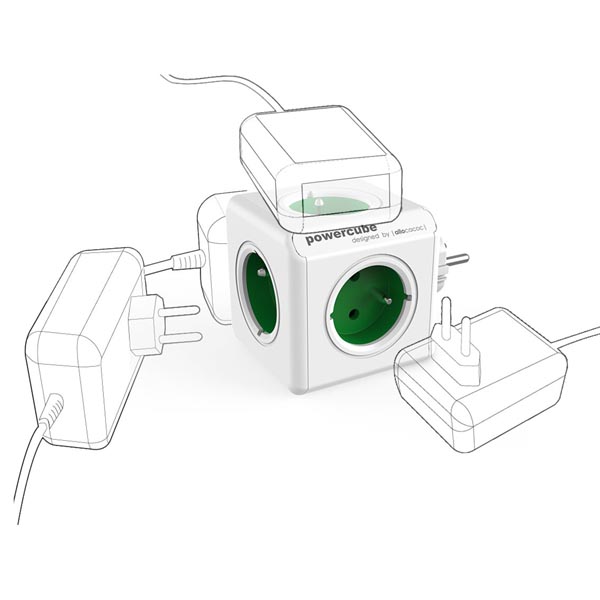 Listwa zasilająca 240V CEE7 widelec POWERCUBE 0.1m ORIGINAL zielona POWERCUBE 5 gniazdek zabezpieczenie przed dziećmi