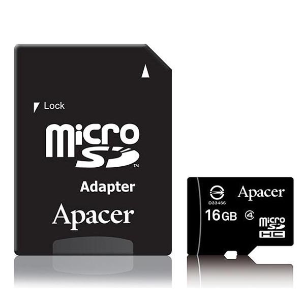 Apacer Karta pamięci Secure Digital Card 16GB micro SDHC AP16GMCSH4 R Class 4 z adapterm