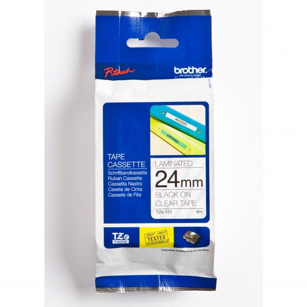 Brother oryginalny taśma do drukarek etykiet Brother TZE 151 czarny druk przezroczysty podkład laminowane 8m 24mm