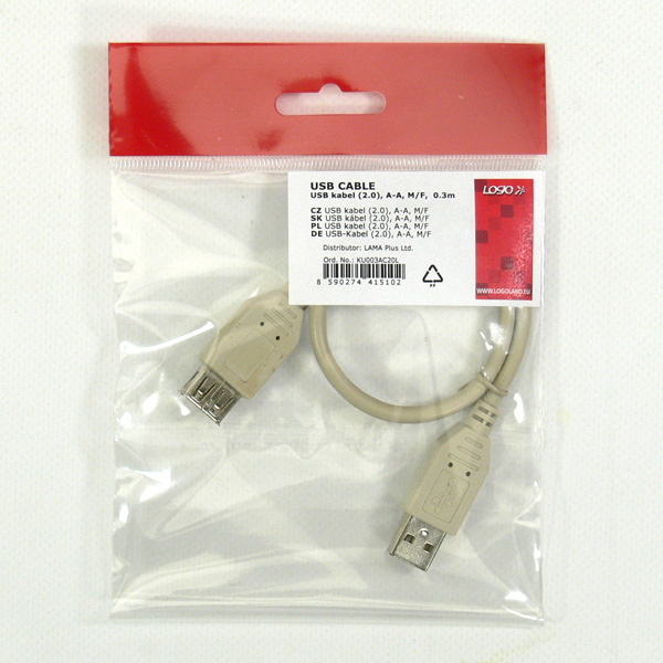 USB kabel 2.0 USB A samec USB A F 0.3m czarny biały Logo