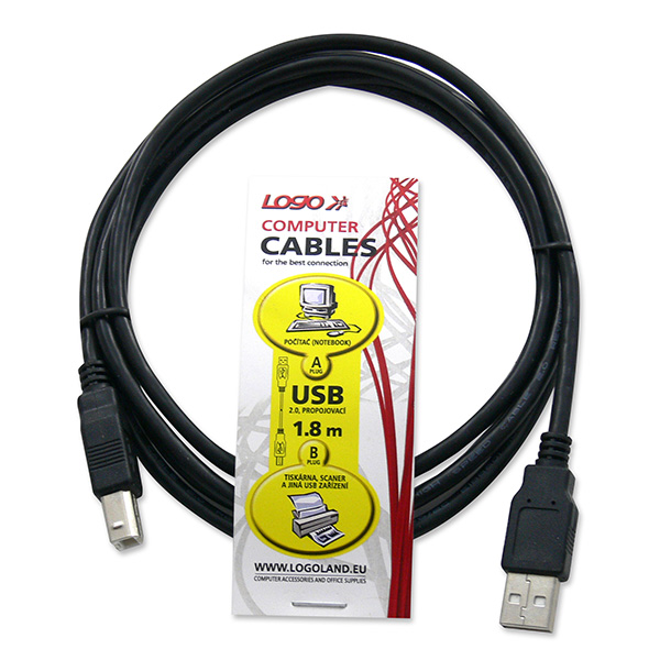 Kable USB A/B(2.0) drukarkowy.Długość 1,8mKolor czarnyLOGO