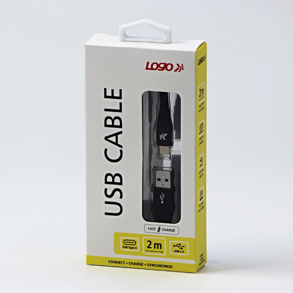 USB kabel 2.0 USB A samec 2m 480 Mb s 5V 3A czarny Logo box oplot nylonowy aluminiowa osłona złącza