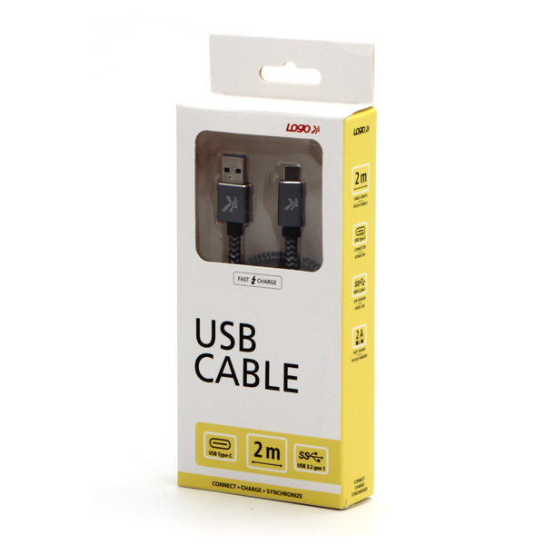 USB kabel 3.2 gen 1 USB A samec 2m 5 Gb s 5V 2A szary Logo box metalowy oplot aluminiowa osłona złącza