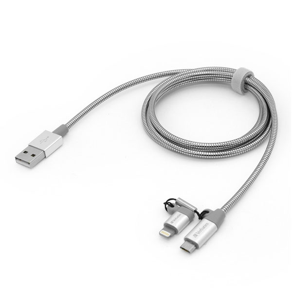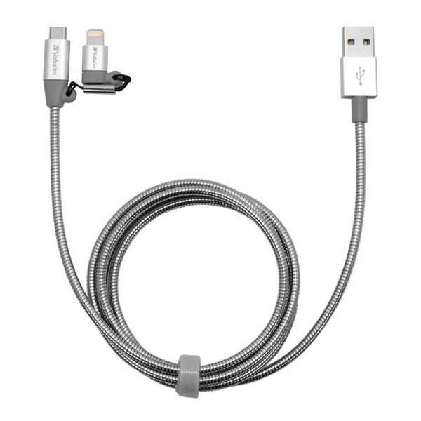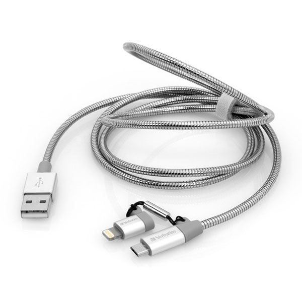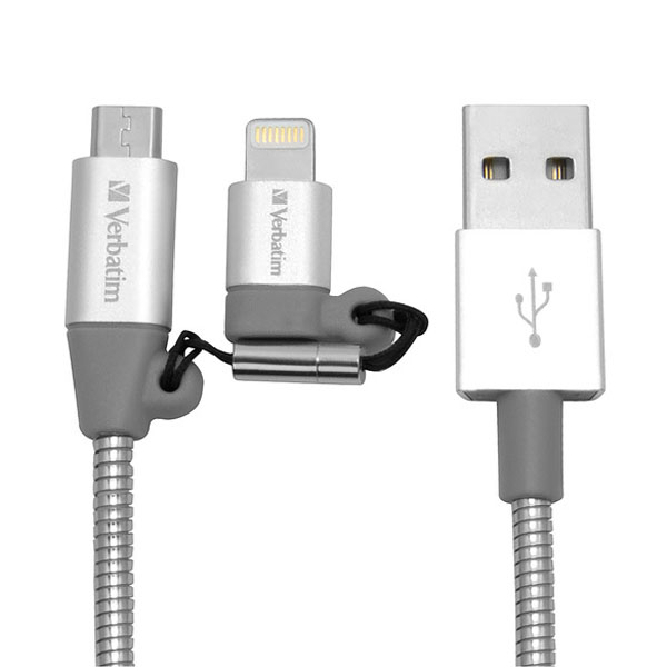 USB kabel 2.0 USB A samec 1m 2 in 1 srebrny Verbatim box 48869 regulowana końcowka Lightning