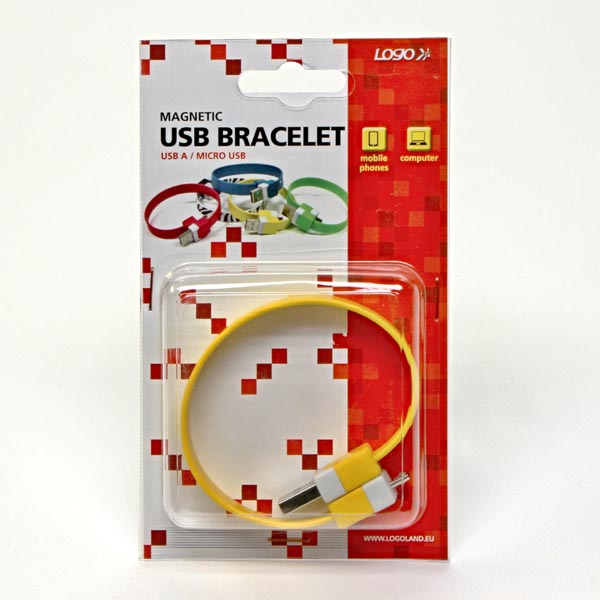 USB kabel 2.0 USB A samec 0.25m żołty Logo blistr na nadgarstek