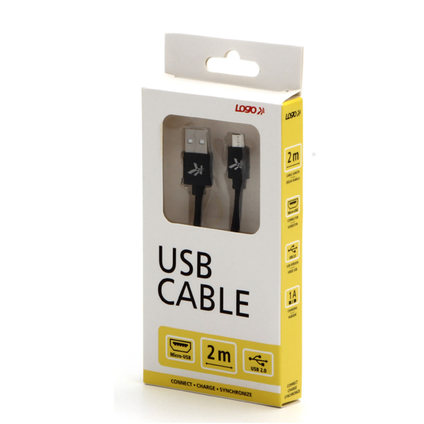 USB kabel 2.0 USB A samec 2m 480 Mb s 5V 1A czarny Logo box oplot nylonowy aluminiowa osłona złącza