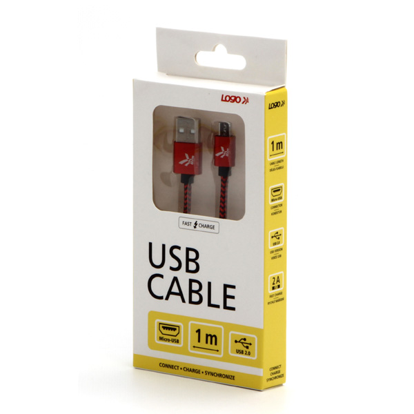 USB kabel 2.0 USB A samec 2m 480 Mb s 5V 1A czerwony Logo box oplot nylonowy aluminiowa osłona złącza