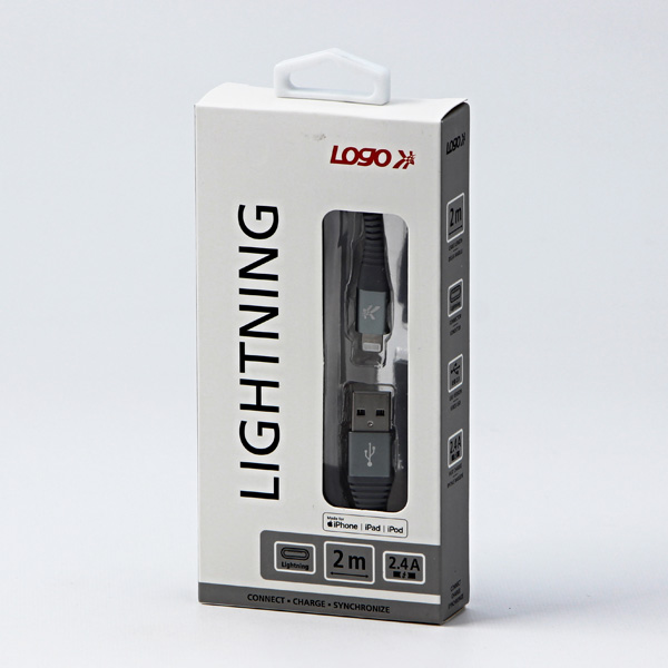 USB kabel 2.0 USB A samec Apple Lightning M 2m MFi certifikat 5V 24A srebrny Logo box oplot nylonowy aluminiowa osłon
