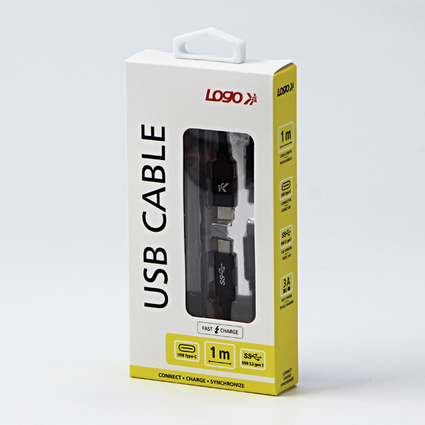 USB kabel 3.2 gen 1 USB C samec 1m 5 Gb s 5V 3A czarny Logo box oplot nylonowy aluminiowa osłona złącza
