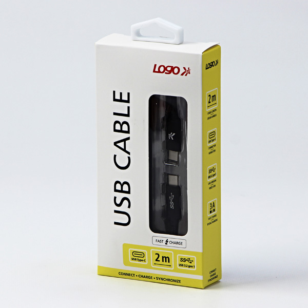 USB kabel 3.2 gen 1 USB C samec 2m 5 Gb s 5V 3A czarny Logo box oplot nylonowy aluminiowa osłona złącza
