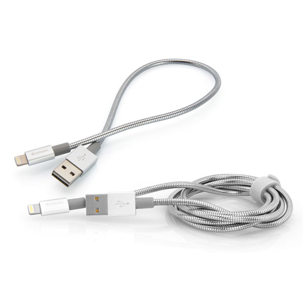 USB kabel 2.0 USB A samec Apple Lightning M 1 + 1.3m srebrny Verbatim box 48873 2szt 1x100cm + 1x30cm