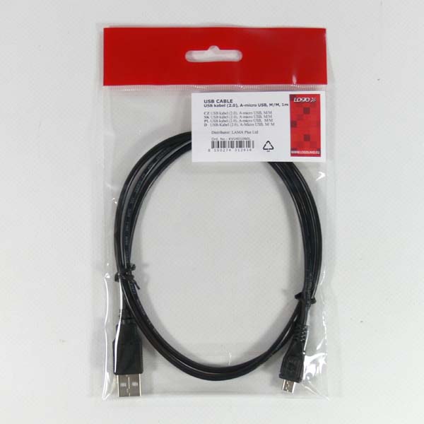USB kabel 2.0 USB A samec 1m czarny Logo