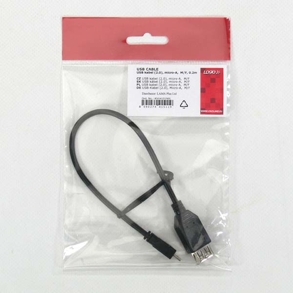 USB kabel 2.0 microUSB samec USB A F 0.2m OTG czarny Logo