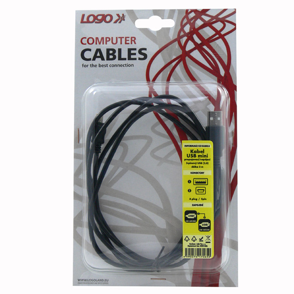 Kable USB miniUSB (2.0) – LOGO- złacza USB A plug/5pin mini USB – długość: 2 m