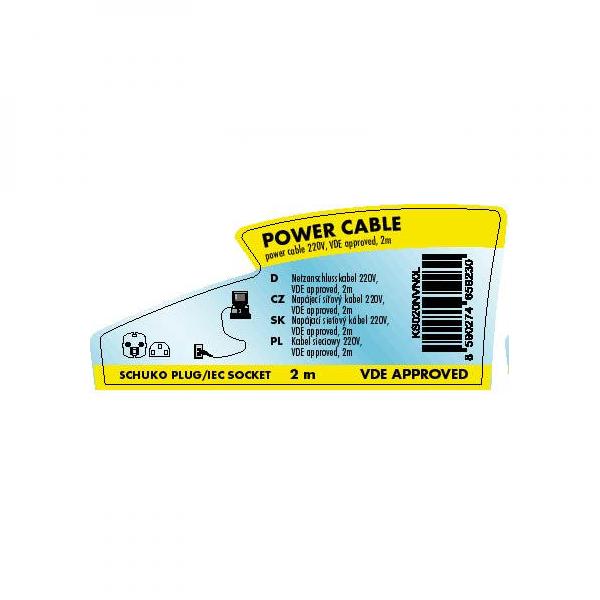 Kabel sieciowy 230V zasilacz CEE7 widelec C13 2m VDE approved czarny Logo