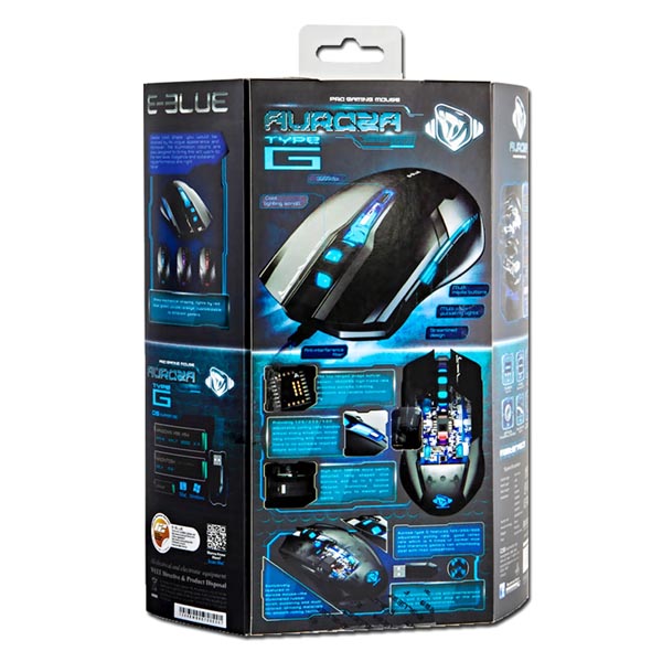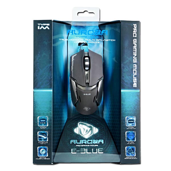 Mysz dla gracza Auroza IMAuroza to mysz o stylowym symetrycznym kształcie idealnie dopasowanym do dłoni. Jest odpowiednia zarowno dla osob prawo jak i leworęcznych. Pulsujące wielobarwne oświetlenie, myszy przyniesie dodatkowe doznania podczas zmagań na polu bitwy. Mysz jest wyposażona w opleciony przewod USB.Co kryje się pod maską?Mysz jest wyposażona w wysokiej jakości chip Avago 3050 z 6600 FPS. Posiada mikroprzełączniki marki OMRON jedne z najlepszych na świecie o żywotności do 5 milionow kliknięć. Czas reakcji można regulować w czterech poziomach do 1000 Hz = 1 ms. Mysz osiąga przyspieszenie do 20G, co jest zaletą podczas robienia obrotu o 180 stopni lub gier wymagających dużej dokładności celowania.5 poziomow DPIMysz oferuje 5 poziomow DPI. Każdy poziom odzwierciedla inny kolor pulsującego światła:500 DPI – czerwone1000 DPI – niebieskie2000 DPI – zielone3000 DPI – fioletowe4000 DPI – pomarańczoweEfektowne wykończenieNiektore części powierzchni myszy są wykonane z gumowego materiału, ktory nie pozwala ślizgać się dłoni nawet podczas długich godzin gry. Efekt luksusu w myszce tworzy rownież nietuzinkowy scroll z efektem podświetlenia led.Mikroprzełączniki OmronOMRON mikroprzełączniki umieszczone w myszy Auroza IM zapewnią żywotność aż do 5 milionow kliknięć. To umożliwi przetrwanie nawet podczas ciężkich bitew.Programowalne ustawieniaDzięki oprogramowaniu (do pobrania z www.e-blue.pl) można dowolnie konfigurować makra i ustawienia dla wybranego przycisku. Teflonowe ślizgaczeTeflonowe ślizgacze zapewniają pewne i dokładne ruchy myszki .Kabel w oplocieOpleciony kabel zapewni doskonały przesył danych i brak jakichkolwiek ubytkow podczas komunikacji dzięki czemu twoja gra będzie mniej stresująca.Specyfikacja:- Chip: AVAGO 3050 premium- Mikroprzełączniki: OMRON- Szybkość reakcji: 125/250/500/1000 Hz- Regulowane DPI: 500/1000/2000/3000/4000 – Przyspieszenie: 20G- Ilość klawiszy: 6- Połączenie: USB- Długość kabla: 1.8 m- żywotność klawiszy: 5 mln uderzeń- Rozmiary: 126 x 64 x 40 mm- Waga: 135 g- Kompatybilna z: Windows 98/2000/ME/NT/XP/Win 7/8/8.1/10Video: E-Blue Auroza Type IM