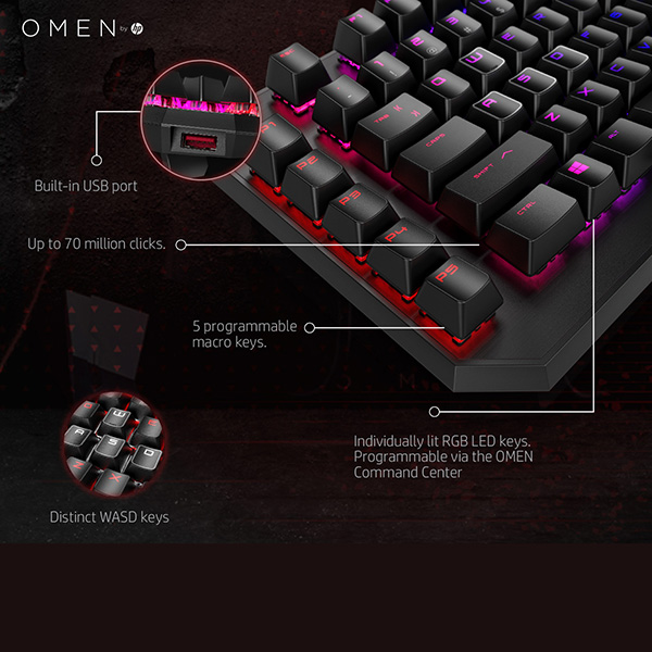 HP OMEN Sequencer Keyboard klawiatura US do gry do gry rodzaj przewodowa USB czarna mechaniczna