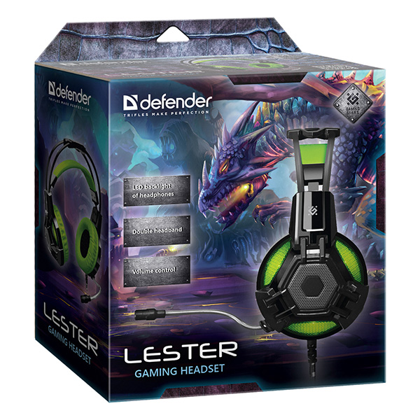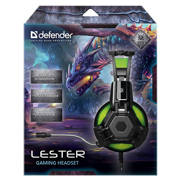 Defender Lester Gaming Headset słuchawki z mikrofonem regulacja głośności czarno zielona 2.0 50 mm przetworniki typ 2x 3.5 m