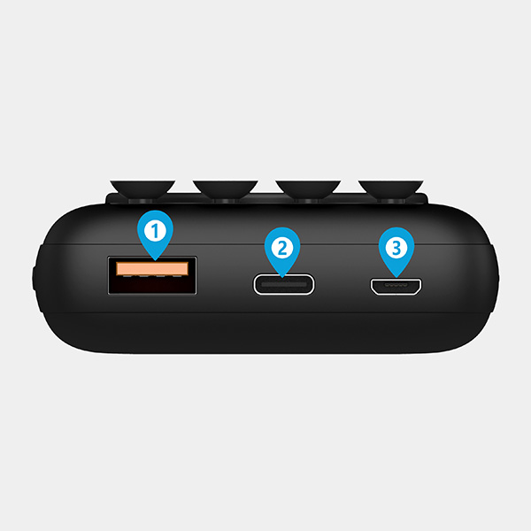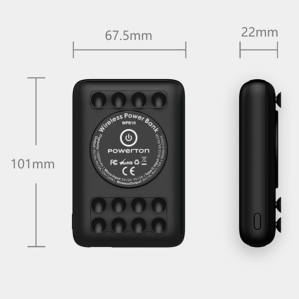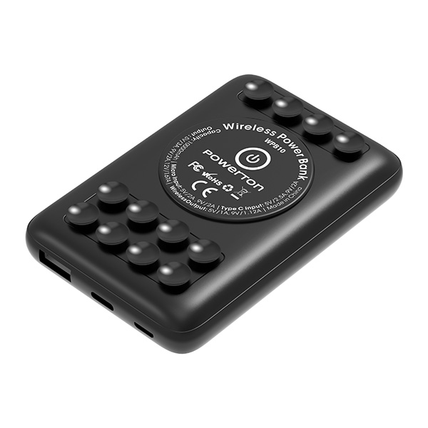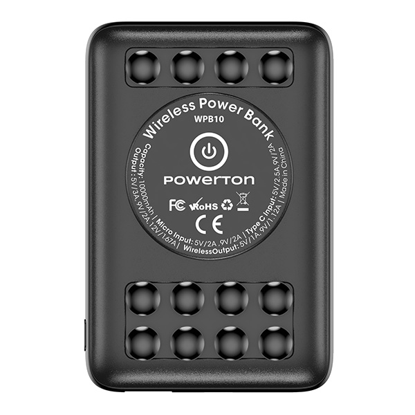 Powerbank WBP20 z ładowarką indukcyjnąPowerton WBP20 o pojemności 20 000 mAh umożliwia bezprzewodowe i przewodowe ładowanie do 3 urządzeń jednocześnie. Dodatkowo na obudowie powerbanku umieszczono 2 zestawy przyssawek, ktore zabezpieczają i przytrzymują telefon w trakcie ładowania w optymalnej odległości od ładowarki indukcyjnej. 2w1 ładowanie indukcyjne i kablemPowerton WBP20 posiada funkcję ładowania bezprzewodowego Qi. Wystarczy przyłożyć telefon do powerbanku a ładowanie rozpocznie się automatycznie. Dla pozostałych urządzeń lub tych bez funkcji ładowania indukcyjnego powerbank posiada gniazda do ładowania przewodowego. Wejścia/ Wyjścia1. USB wyjście do ładowania urządzeń za pomocą przewodow USB- micro USB lub USB – USB-typ C.2. USB-C wejście/ wyjście może służyć zarowno do ładowania urządzeń zewnętrznych z powerbanku jak i doładowania samego powerbanku. Zestaw nie zawiera kabla USB-C.3. Micro USB wejście do lądowania powerbanku za pomocą dołączonego do zestawu kabla micro-USB.PrzyssawkiDwa zestawy przyssawek gwarantują pewny uchwyt w optymalnej pozycji do ładowania indukcyjnego. Dzięki przyssawkom możesz ładować telefon umieszczony w torebce lub plecaku bez użycia kabla lub prowadzić rozmowę i jednocześnie ładować urządzenie. Aby przyssawki działały prawidłowo muszą być doczepione do płaskiej powierzchni telefonu lub etui z silikonu lub innego tworzywa gwarantującego szczelne przyleganie przyssawek. Nie zasłania aparatuKompaktowe wymiary powerbanku umożliwiają ładowanie urządzenia i jednoczesne robienie zdjęć lub kręcenie filmu lub relacji.SpecyfikacjaPojemność: 10 000 mAhMicro USB wejście: 5V/2A, 9V/2AUSB-C wejście/wyjście: 5V/2.5A, 9V/2AUSB wyjście: 5V/3A, 9V/2A, 12V/1.67AŁadowanie indukcyjne: 5V/1A, 9V/1.12AEfektywność ładowania: większa lub rowna 75%Odległość transmisji: mniejsza lub rowna 6 mmWymiary: 101 x 67.5 x 22 mmWaga: 218.5 g