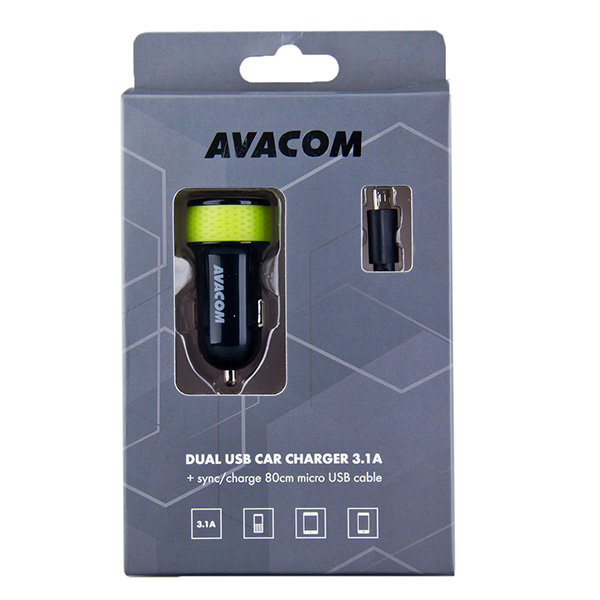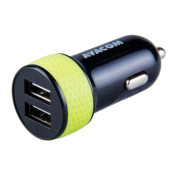 Avacom ładowarka samochodowa z dwoma wyjściami USB 5V 1A 3.1A czarno zielona