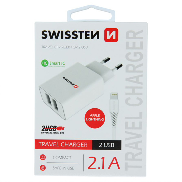 Zasilacz sieciowy adapter SWISSTEN 10W 2 portowy USB A kabel Lightning Mfi Smart IC