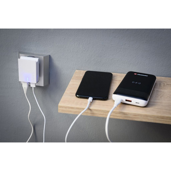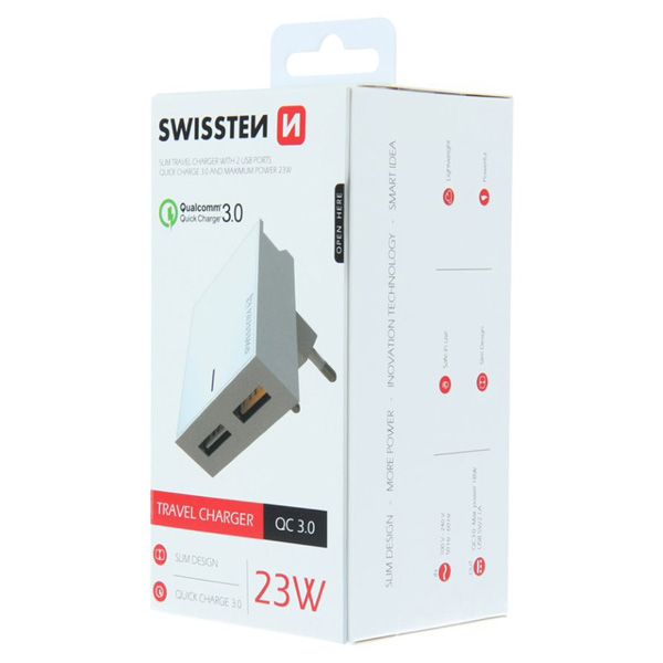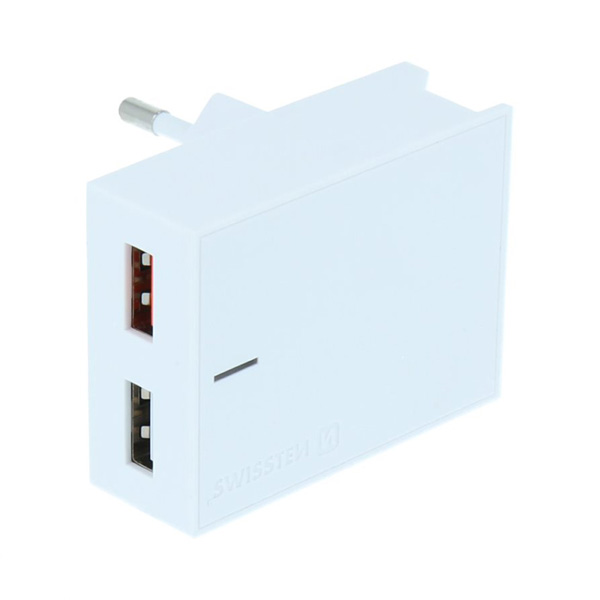 Zasilacz sieciowy adapter SWISSTEN 23W 2 portowy USB A podstawka stojak na telefon