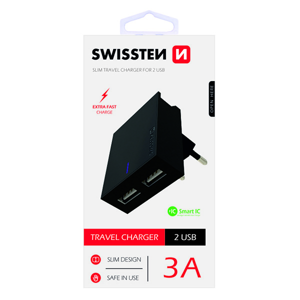 Zasilacz sieciowy adapter SWISSTEN 15W 2 portowy USB A podstawka stojak na telefon
