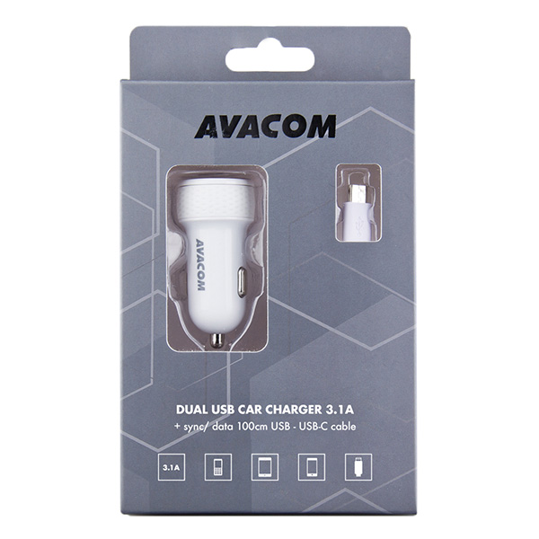 Ładowarka samochodowa Avacom 24W 2 portowy USB A kabel USB C