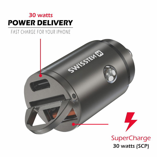 Ładowarka samochodowa SWISSTEN 30W 2 portowy USB C USB A USB Supercharge