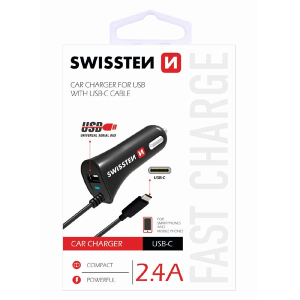 Ładowarka samochodowa SWISSTEN 12W 1 port USB A kabel USB C