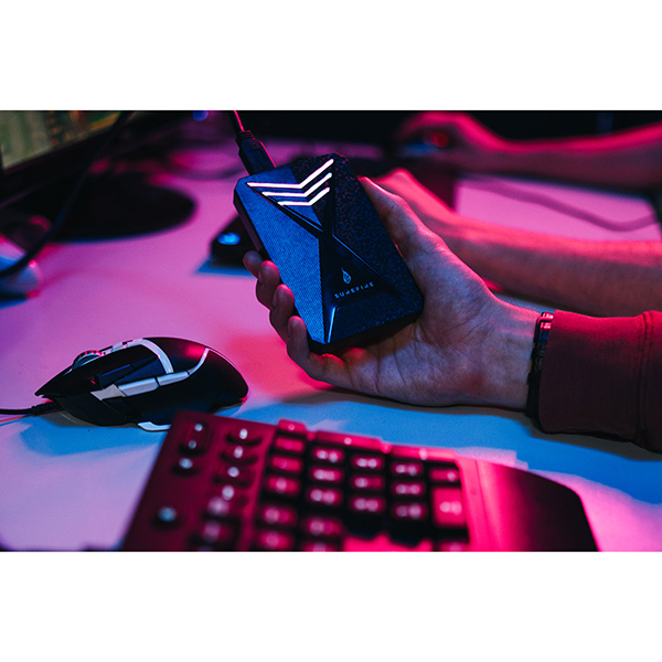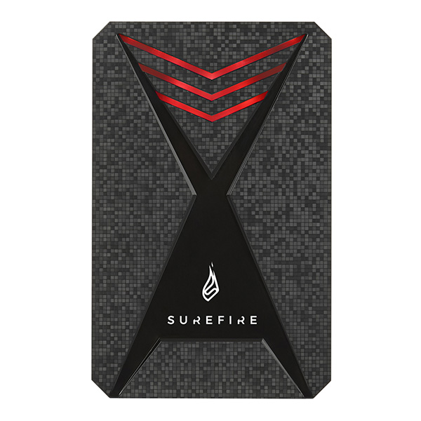 Dysk twardy SSD Surefire GAMING BUNKERWiększa pojemność dysku twardego dla konsol i komputerow PC – zachowaj wszystkie gry w jednym miejscu. Zaprojektowany z myślą o graczach – z podświetleniem RGB i oprogramowaniem do tworzenia kopii zapasowych.Większa pojemnośćKonsole do gier mają ograniczone możliwości przechowywania danych, a najnowsze gry potrafią szybko zapełnić całą dostępną przestrzeń, nie pozostawiając miejsca na nowe tytuły. Gamingowy dysk twardy Gaming Bunker o pojemności 2 TB może służyć do przechowywania nawet 50 lub więcej gier***. Nie musisz już decydować, czy usunąć gry z pamięci konsoli lub dysku komputera, aby zwolnić miejsce na nowe tytuły. KolorDysk jest wyposażony w wielokolorowe, zmienne oświetlenie akcentowe LED RGB oraz obudowę wzorowaną na najnowszych konsolach. Gamingowy dysk twardy HDD SureFire zapewnia wysoką prędkość transmisji danych i idealnie nadaje się do przechowywania najnowszych gier.Szybsze ładowanieDysk SSD SureFire Gaming korzysta z szybkiej pamięci Flash oraz interfejsu USB 3.2 GEN 1, zapewniając prędkość transmisji danych do 5 Gb/s. Dysk jest zoptymalizowany pod kątem niedoścignionej wydajności, aby znacznie redukować czas tworzenia kopii zapasowych gier. Dysk SSD jest rownież wyposażony w przejściowkę USB-C™, ktora umożliwia korzystanie z dysku z rożnymi urządzeniami. Dyski SSD nie posiadają ruchomych części, dzięki czemu są szybsze, bardziej trwałe, bezgłośne i zużywają mniej energii!Zaprojektowane dla graczySmukła, czarna konstrukcja inspirowana najnowszymi konsolami i oświetlenie akcentowe LED o zmieniających się kolorach – dysk twardy HDD SureFire Gaming to stylowe rozwiązanie do obsługi gier. Większość konsol wymaga formatowania, więc należy wykonać kopię zapasową przed użyciem dysku. Dysk twardy może rownież być użyty z innymi konsolami i komputerami, ale może wymagać uprzedniego sformatowaniaOprogramowanie Nero BackupW celu zwiększenia poziomu bezpieczeństwa z dyskiem dostarczane jest oprogramowanie Nero Backup, za pomocą ktorego można łatwo i w dowolnym momencie wykonać kopię zapasową wszystkich plikow, folderow i napędow znajdujących się w komputerze lub laptopie. Możliwe jest rownież zaplanowanie automatycznego wykonywania kopii zapasowych na wybrany czas, dzięki czemu kopie zapasowe będą tworzone regularnie! Program do tworzenia kopii zapasowych Nero Backup jest zgodny wyłącznie z systemem operacyjnym Windows.Wymagania systemowePorty USB 3.0 lub USB 2.0Konsole do gier z portami USB*Windows 10, 8, 7Mac OS X 10.6 lub nowsza wersja