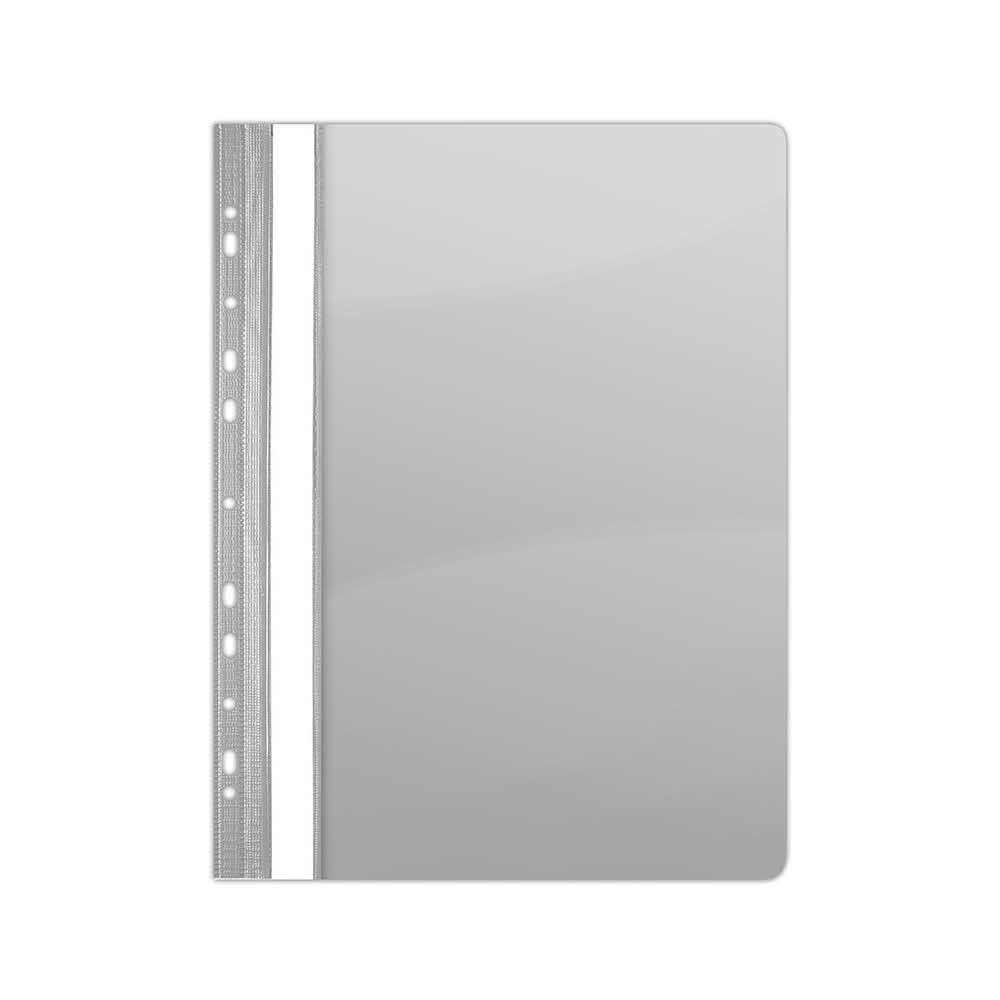 wykonany z PVC, twardy strona przednia transparentna – grubość: 150μm; tylna kolorowa: 160μm mieści ok. 200 kartek posiada 11 dziurek do wpięcia do segregatora wymienny, dwustronnie zapisywalny pasek brzegowy format: A4 rozmiar: 235x310mm kod kreskowy na każdej sztuce kolor szary