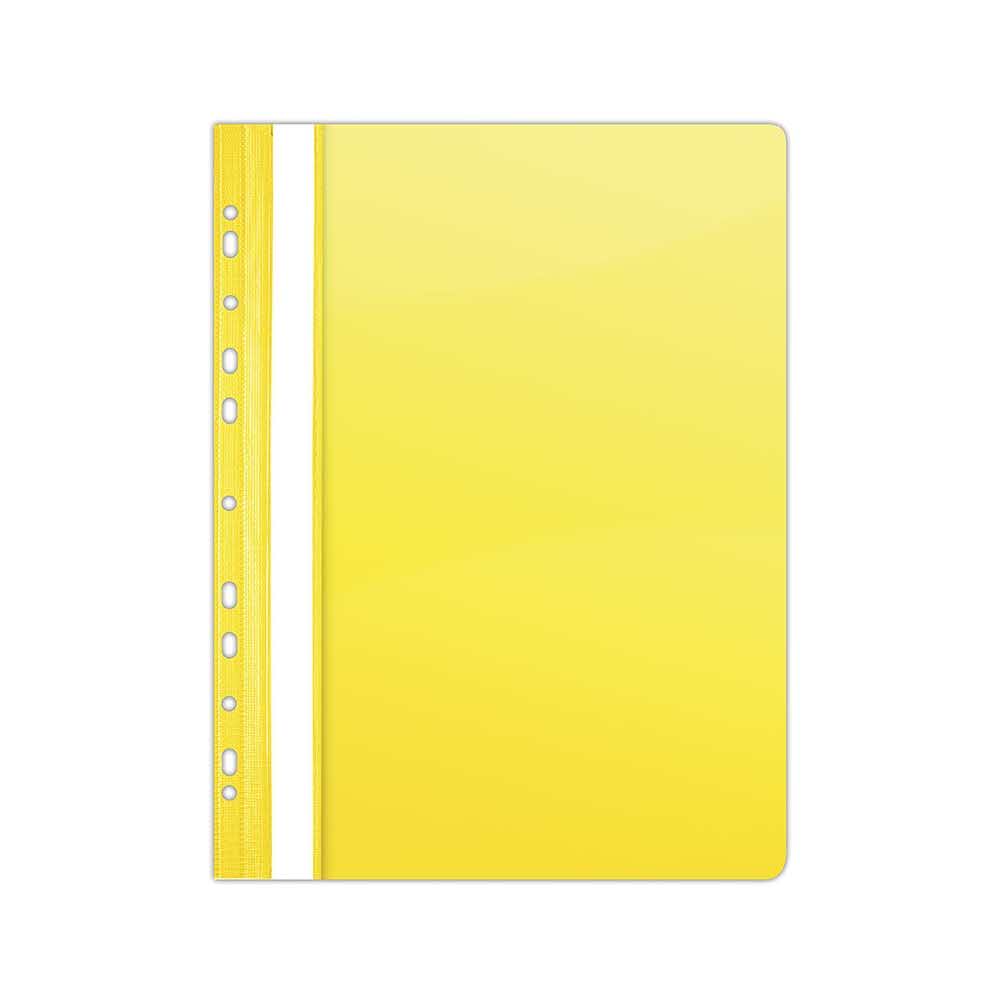 wykonany z PVC, twardy strona przednia transparentna – grubość: 150μm; tylna kolorowa: 160μm mieści ok. 200 kartek posiada 11 dziurek do wpięcia do segregatora wymienny, dwustronnie zapisywalny pasek brzegowy format: A4 rozmiar: 235x310mm kod kreskowy na każdej sztuce kolor żółty