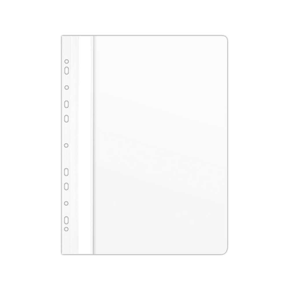 wykonany z PVC, twardy strona przednia transparentna – grubość: 150μm; tylna kolorowa: 160μm mieści ok. 200 kartek posiada 11 dziurek do wpięcia do segregatora wymienny, dwustronnie zapisywalny pasek brzegowy format: A4 rozmiar: 235x310mm kod kreskowy na każdej sztuce kolor biały