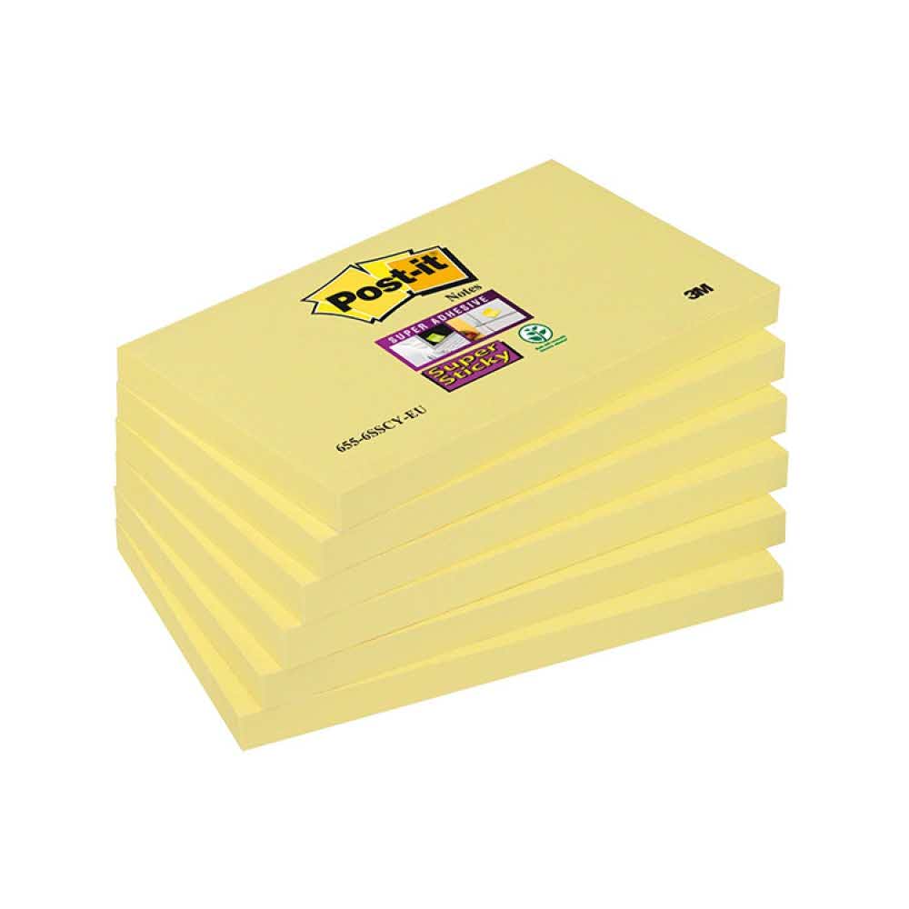 Post-It® Bloczek Samoprzylepny Super Sticky 655.6sscy Eu 127x76mm 6×90 Kart Żółty