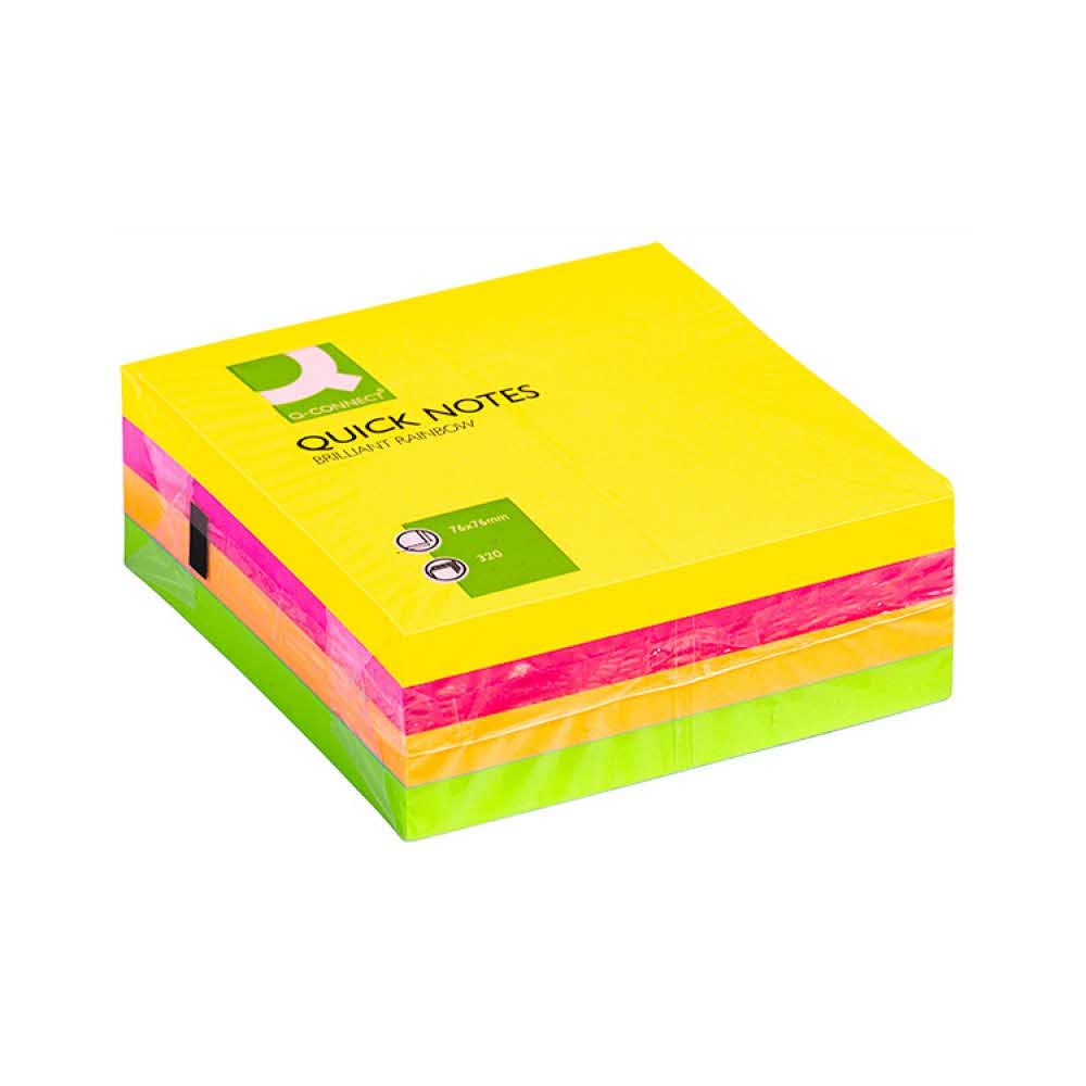 kolorowe karteczki samoprzylepne, do zastosowania w pracy, szkole i domu żywe, fluorescencyjne kolory karteczek ilość karteczek: 1×320 w rozmiarze 76x76mm gramatura: 70gsm możliwość kilkukrotnego przeklejania karteczek klej usuwalny za pomocą wody kolor neonowy