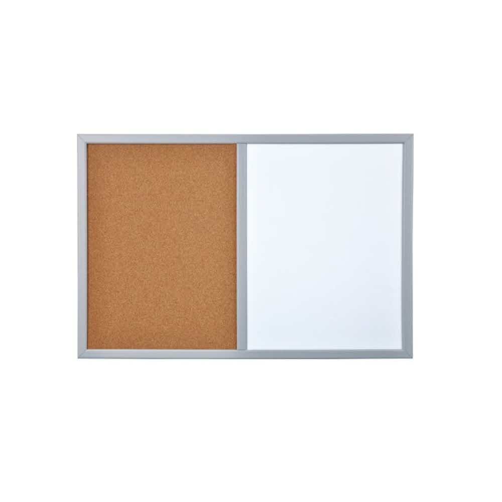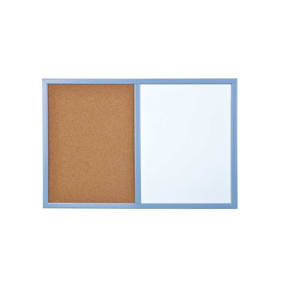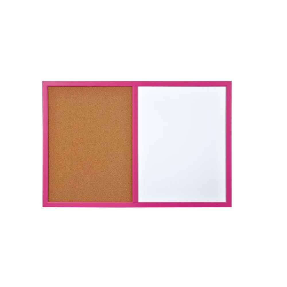 tablica łączona ½ powierzchni melaminowa – niemagnetyczna ½ powierzchni korkowa nie pozostawiająca śladów po pinezkach drewniana, lakierowana rama do mocowania w poziomie lub pionie w komplecie 2 haczyki do zawieszenia na ścianie rama żółta, szara, różowa lub niebieska posiada zestaw do samodzielnego mocowania rozmiar: 60x40cm czarny marker z uchwytem umożliwiającym przyklejenie do tablicy oraz 6 pinezek beczułek GRATIS