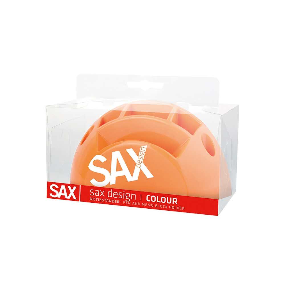 przybornik na biurko, wykonany z odpornego na pęknięcia tworzywa sztucznego z czterema komorami oraz dwoma otworami na akcesoria piśmiennicze nietuzinkowa kolorystyka oraz kształt – linia SAXDesign oferowany w transparentnym blistrze z zawieszką wymiary: 150x80x80mm kolor pomarańczowy