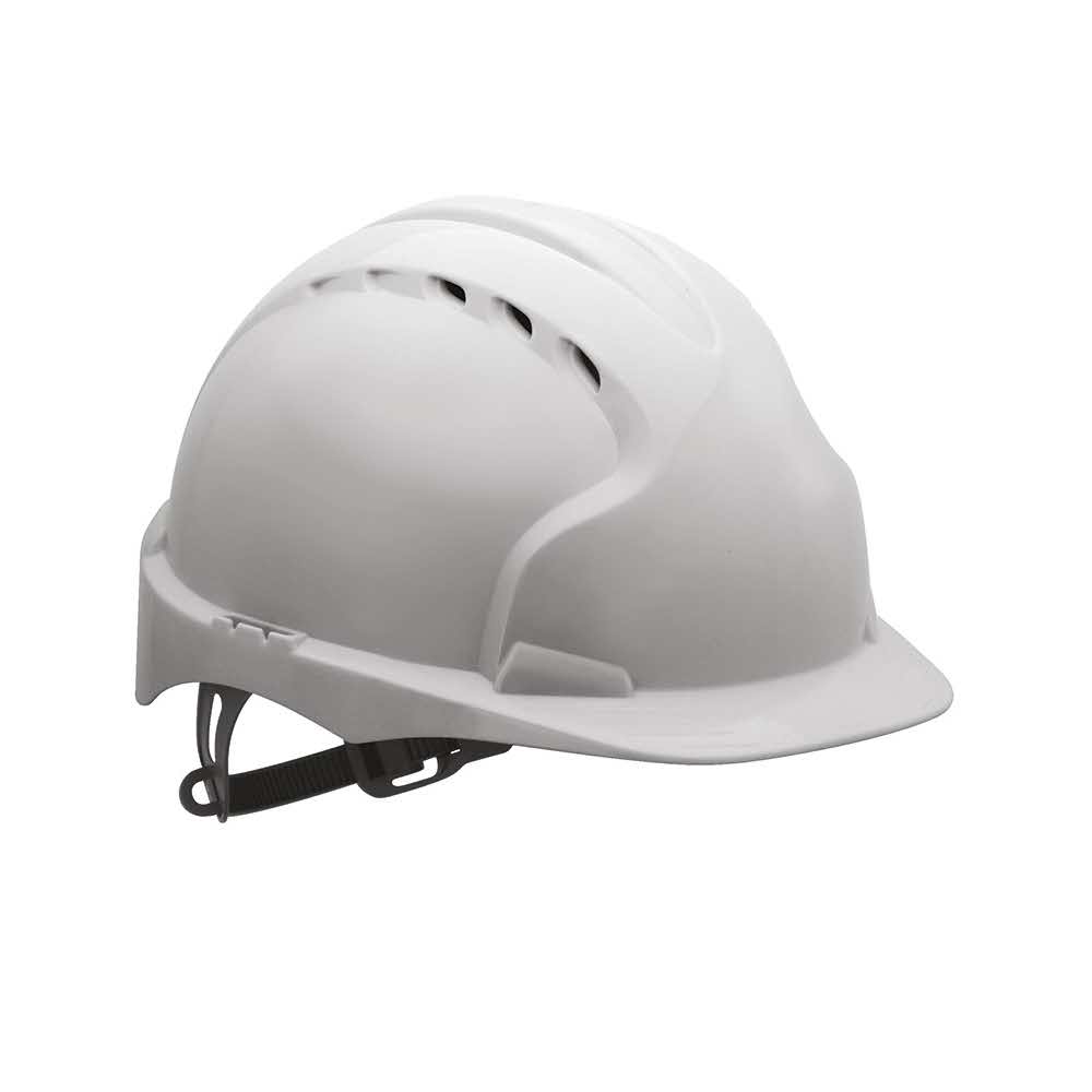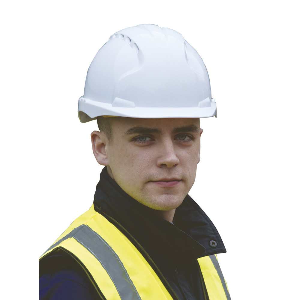 nowoczesny kask ochronny spełniający wymagania normy EN397 6-cio punktowa więźba z polietylenu 3 punktowa regulacja głębokości zapięcie One-Touch możliwość personalizacji – wykonania logo (uzależnione od ilości) do prac: w przemyśle, w budownictwie, w magazynach i halach waga 330g materiał – tworzywo HDPE polietylen żywotność 5 lat odporność termiczna od -30° do 50° napotnik wykonany z egipskiej bawełny o wysoce ochronnych właściwościach, pokryty porowatym poliuteranem P4 neutralne PH kolor biały
