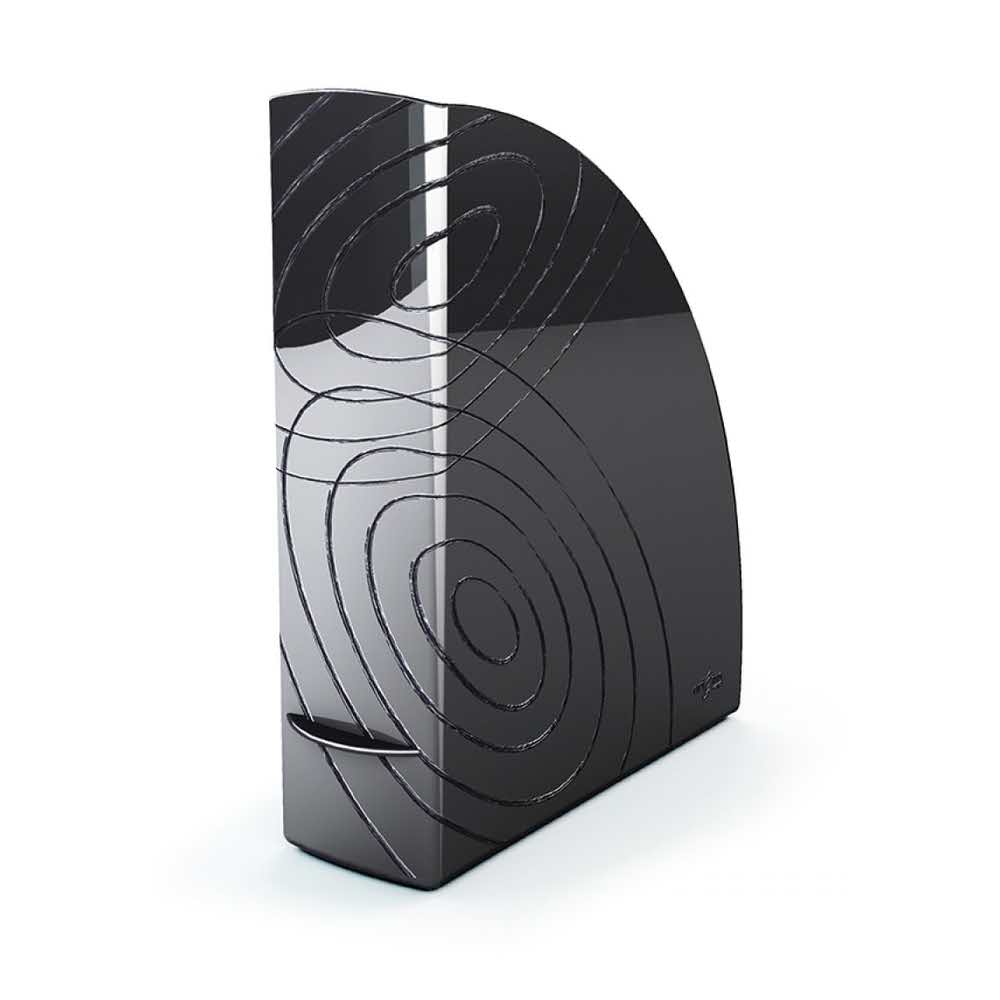 pojemnik na czasopisma, wykonany z odpornego na pęknięcia i odkształcenia polistyrenu w 100% recyklowanego