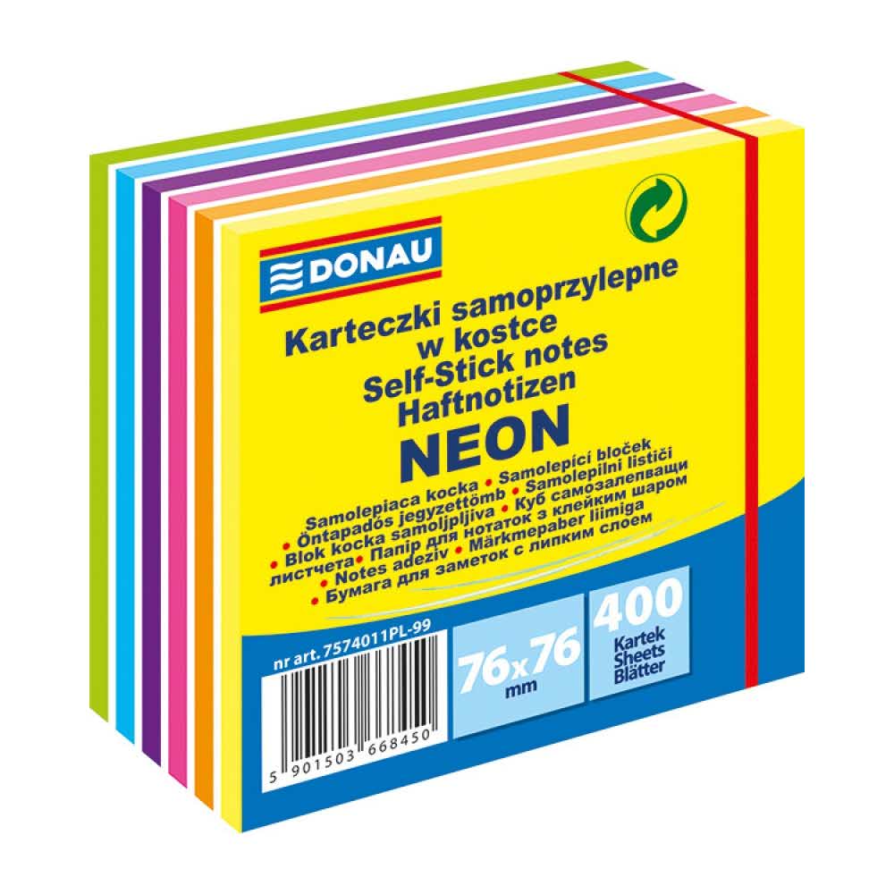 Donau Kostka Samoprzylepna 76x76mm Neon 1×400 Kart Mix Kolorów