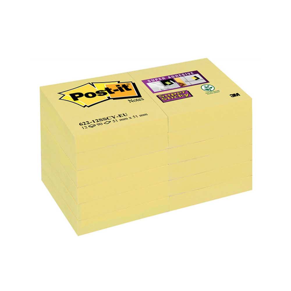 Post-It® Bloczek Samoprzylepny Super Sticky 622.12sscy Eu 46.7×46.7 Mm 12×90 Kart Żółty