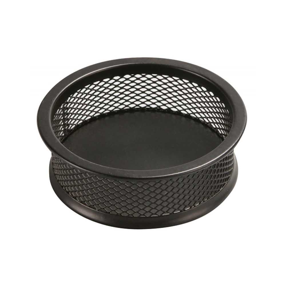 okrągły pojemnik na spinacze z metalowej siateczki powlekanej lakierem wysokość: 32mm średniac: 90mm kolor: czarny