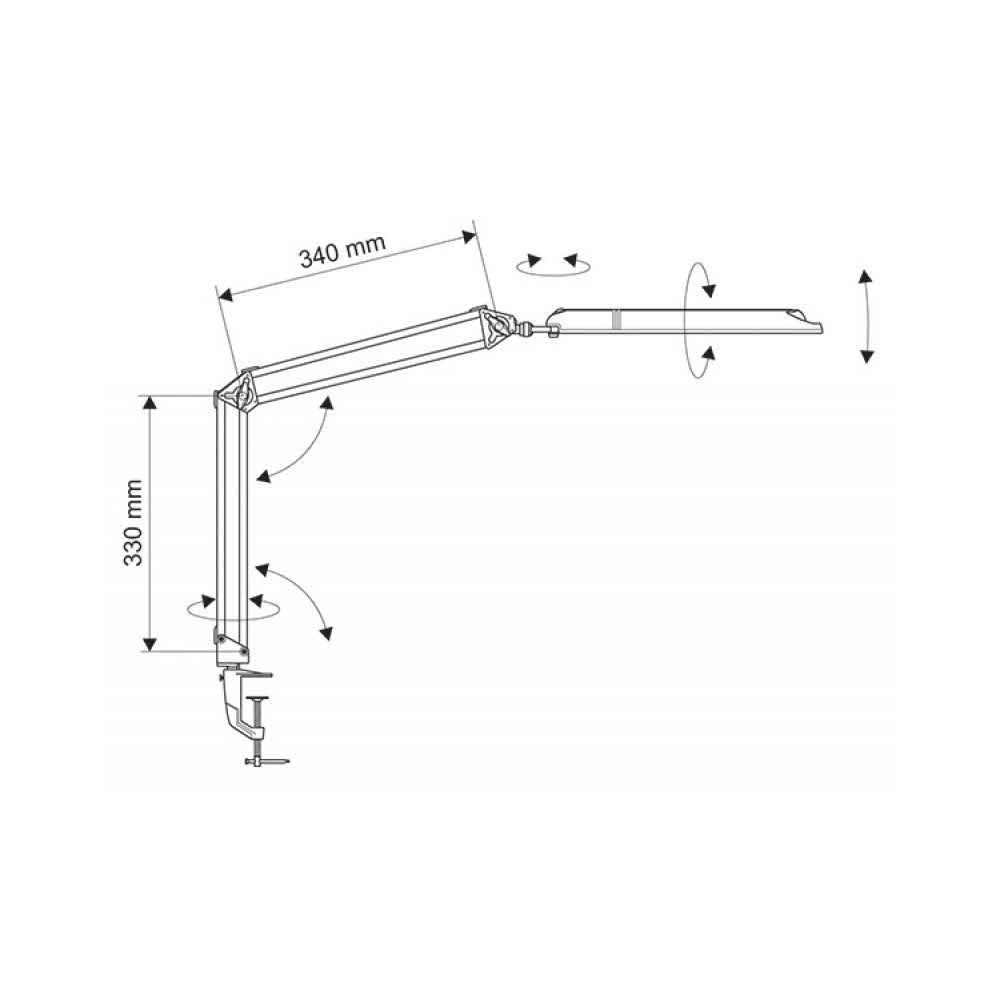profesjonalna lampa do pracy wysoka jakość oświetlenia atrakcyjna cena certyfikat bezpieczeństwa Intertek GS podłużna głowica i delikatna konstrukcja podwójnego ramienia opatentowana koncepcja bezpieczeństwa technicznego opracowana przez inżynierów MAUL źródło światła: energooszczędna żarówka 11W typ trzonka: G23 biel światła dziennego (6500K) sprzedawana z żarówką w klasie energetycznej A średnie zużycie energii: 14 kWh/1000h żywotność źródła światła: 8000 godzin świecenia nie pobiera mocy w stanie OFF natężenie oświetlenia: 1700lx w odległości 35cm strumień świetlny: 840lm górne ramię o długości 34cm, dolne ramię – 33cm głowica oświetleniowa o wymiarach 36x7cm łatwo dostępny przełącznik umieszczony na głowicy reflektorek dla optymalnego wykorzystania oświetlenia oprawa pasuje do żarówek klasy energetycznej od A+ do B wersja z metalowym zaciskiem do mocowania do biurka o grubości blatu do 5,5cm, z ochronną podkładką wysokość robocza w typowej pozycji wynosi 42cm 2 lata gwarancji kolor: biały