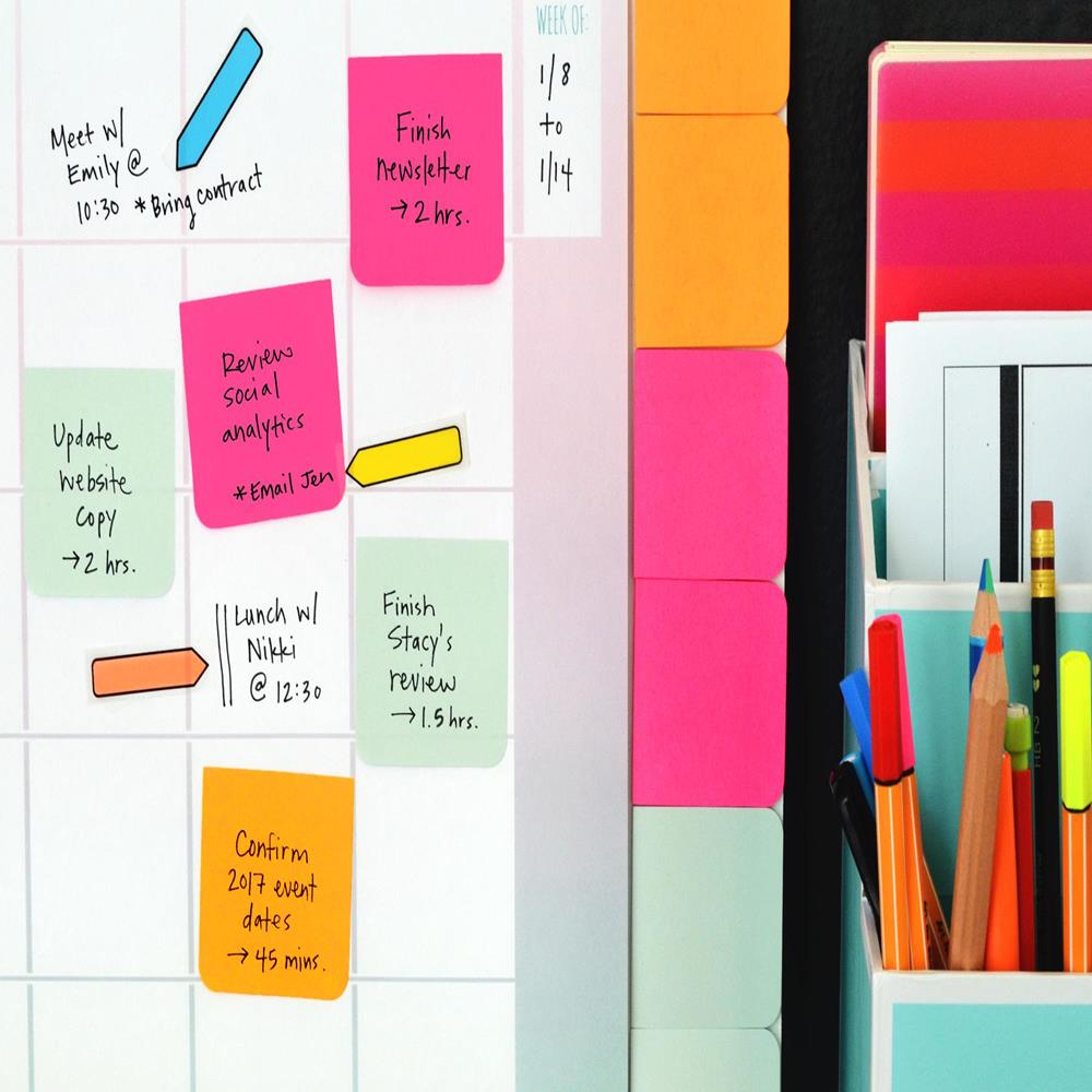 Idealne przy biurku jak i na „trudnych” dla zwykłych karteczek samoprzylepnych pionowych powierzchniach takich jak ściany, meble i okna – zawsze trzymają się mocno, odklejają bez uszkadzania powierzchni i bez śladu kleju – nawet przy wielokrotnym użyciu.